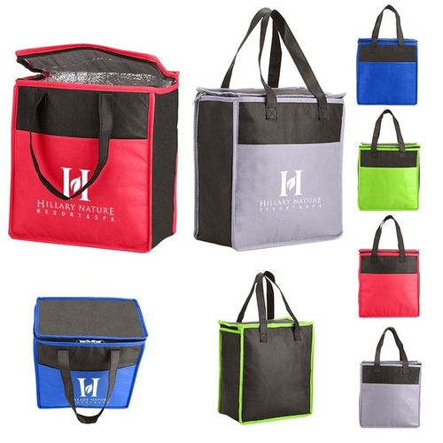 Custom Two-Tone Flat Top Insulated Nonwoven Grocery Tote