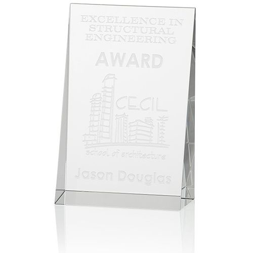 • Wedge-shaped crystal awards reflect light with ease.